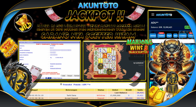 AKUNTOTO JACKPOT SLOT MAHJONG WINS 3 BLACK SCETTER Rp 15.900.000 RABU 01 OKTOBER 2025 Selamat kepada User id : ADU** Telah berhasil mendapatkan kemenangan besar pada permainanSLOT MAHJONG WINS 3 BLACK SCETTER 5 – 10 menit pihak AKUNTOTO sudah melakukan transfer kepada pemilik User id dan dana sudah dapat di cairkan oleh pemenang. Bukti pembayaran…