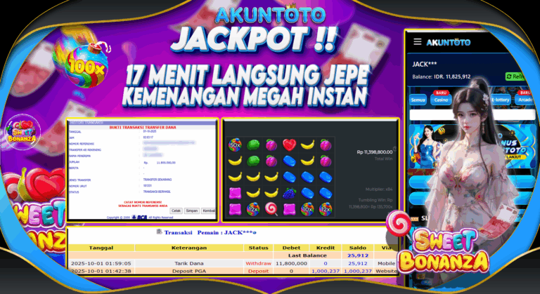 AKUNTOTO JACKPOT SLOT SWEET BONANZA Rp 11.800.000 RABU 01 OKTOBER 2025 Selamat kepada User id : JACK*** Telah berhasil mendapatkan kemenangan besar pada permainanSLOT SWEET BONANZA 5 – 10 menit pihak AKUNTOTO sudah melakukan transfer kepada pemilik User id dan dana sudah dapat di cairkan oleh pemenang. Bukti pembayaran yang kami berikan merupakan bukti pembayaran…