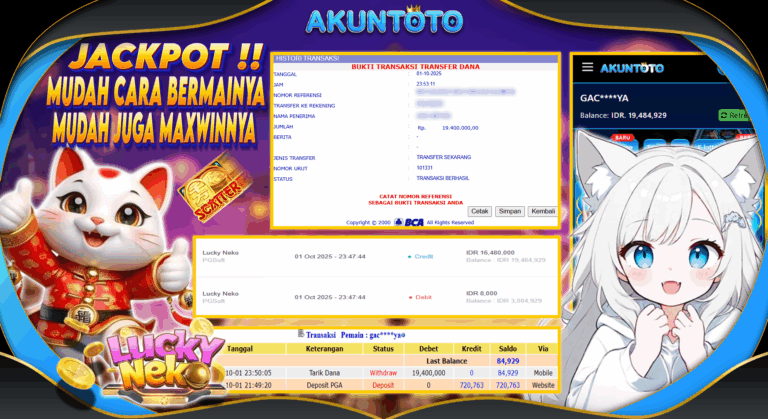 AKUNTOTO JACKPOT SLOT LUCKY NEKO Rp 19.400.000 KAMIS 02 OKTOBER 2025 Selamat kepada User id : GAC****YA Telah berhasil mendapatkan kemenangan besar pada permainanSLOT LUCKY NEKO 5 – 10 menit pihak AKUNTOTO sudah melakukan transfer kepada pemilik User id dan dana sudah dapat di cairkan oleh pemenang. Bukti pembayaran yang kami berikan merupakan bukti pembayaran…