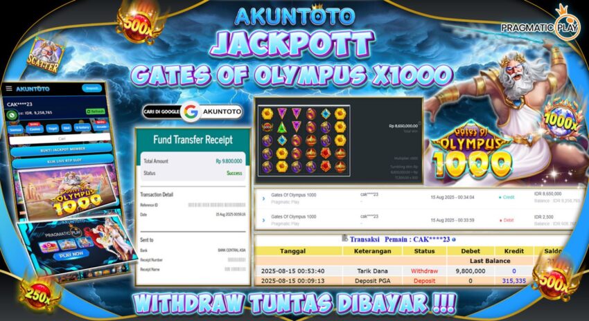AKUNTOTO JACKPOT SLOT GATES OF OLYMPUS 1000 Rp 9.800.000 JUMAT 15 AGUSTUS 2025