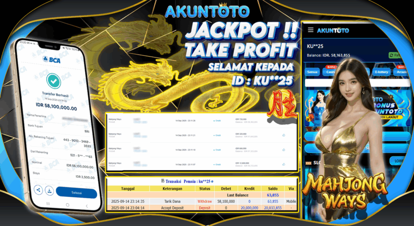 AKUNTOTO JACKPOT SLOT MAHJONG WAYS Rp 85.000.000 SENIN 15 SEPTEMBER 2025