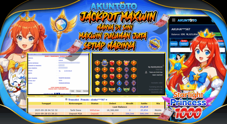 AKUNTOTO JACKPOT SLOT SLOT STARLIGHT PRINCESS Rp 13.100.000 SELASA 02 SEPTEMBER 2025 Selamat kepada User id : VRA***GG : Telah berhasil mendapatkan kemenangan besar pada permainanSLOT STARLIGHT PRINCESS 5 – 10 menit pihak AKUNTOTO sudah melakukan transfer kepada pemilik User id dan dana sudah dapat di cairkan oleh pemenang. Bukti pembayaran yang kami berikan merupakan…