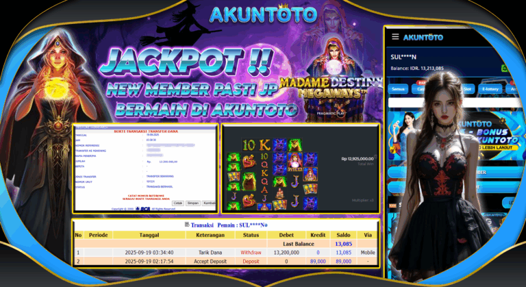 AKUNTOTO JACKPOT SLOT MADAME DESTINY MEGAWAYS Rp 13.200.000 JUMAT 19 SEPTEMBER 2025 Selamat kepada User id : SUL****N Telah berhasil mendapatkan kemenangan besar pada permainanMADAME DESTINY MEGAWAYS 5 – 10 menit pihak AKUNTOTO sudah melakukan transfer kepada pemilik User id dan dana sudah dapat di cairkan oleh pemenang. Bukti pembayaran yang kami berikan merupakan bukti…