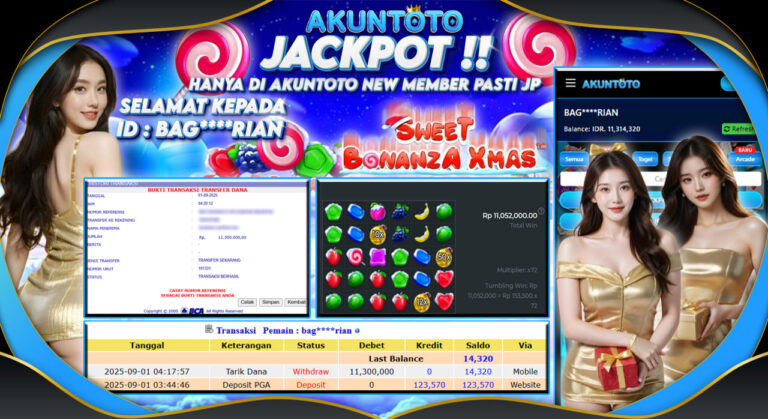 AKUNTOTO JACKPOT SLOT SWEET BONANZA XMAS Rp 11.300.000 SENIN 01 SEPTEMBER 2025 Selamat kepada User id : BAG****RIAN Telah berhasil mendapatkan kemenangan besar pada permainanSWEET BONANZA XMAS 5 – 10 menit pihak AKUNTOTO sudah melakukan transfer kepada pemilik User id dan dana sudah dapat di cairkan oleh pemenang. Bukti pembayaran yang kami berikan merupakan bukti…